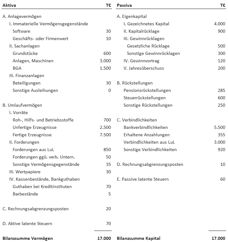 Erstellen Sie anhand der vorstehenden Angaben eine Strukturbilanz auf Basis des unten stehenden Schemas. Berücksichtigen Sie die Angaben des Anhangs bei der Ermittlung der bilanzanalytischen Werte.